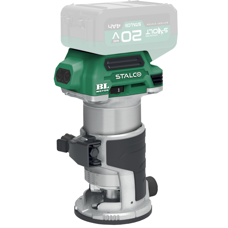 Akumulátorová univerzálna fréza s horným vretenom PRS20-20BLVS sa osvedčí pri rôznych prácach v dielni. Nástroj možno použiť na vytváranie drážok alebo rezov určitého tvaru a hĺbky v povrchu materiálov. Dobre sa osvedčí pri práci s rôznymi materiálmi. Je poháňaná výkonným lítium-iónovým akumulátorom. To mu dáva ešte väčšiu všestrannosť použitia. Jej nízka hmotnosť zasa umožňuje ešte pohodlnejšie frézovanie. Pre jednoduché používanie je k dispozícii systém jednoduchej výmeny fréz, ako aj nastaviteľná rýchlosť. Akumulátorová frézka STALCO PRS20-20BLVS je vybavená ochranou proti preťaženiu a systémom pozvoľného štartu. Ten zabezpečuje komfort pri práci, znižuje opotrebovanie stroja a prispieva k väčšej bezpečnosti prevádzky. Súčasťou súpravy frézky je vodiaca lišta na presnejšiu prácu. Okrem toho obsahuje príslušenstvo potrebné na inštaláciu vysávača, ktorý uľahčí udržiavanie čistoty na pracovisku.