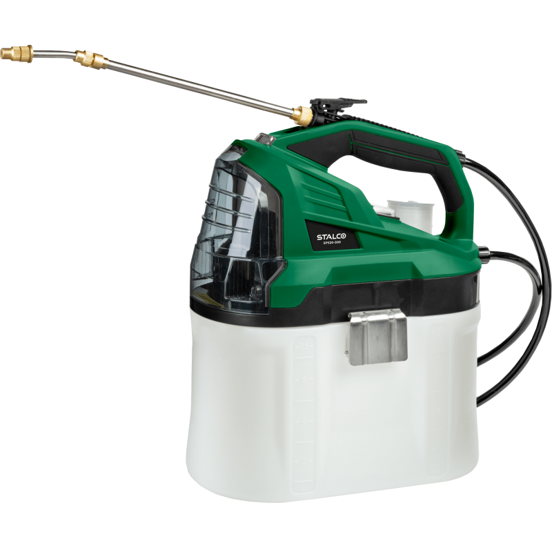 Pri boji s burinou sa oplatí použiť akumulátorový postrekovač SPS20-500, ktorý je užitočným nástrojom na intenzívne a dlhodobé postrekovanie. Vďaka napájaniu z batérie možno prácu vykonávať mimo budov a bez častého čerpania. To je vhodné najmä pri postrekoch na veľkých plochách. Oplatí sa ho používať pri prácach v sadoch a záhradných škôlkach. Užitočný bude aj pri údržbe chodníkov a parkovísk pred domom. Akumulátorový postrekovač SPS20-500 STALCO je veľmi výkonný. Motor dosahuje prevádzkový tlak až 2 bary. Prietok vody 0,5 litra za minútu a 7,5-litrová nádrž uľahčujú vykonávanie aj veľmi intenzívnych postrekov. Náradie je ľahké a jeho prenášanie ešte viac uľahčuje prídavný ramenný popruh. Súčasťou balenia je kopija, 1,4 m dlhá hadica a ramenný popruh.