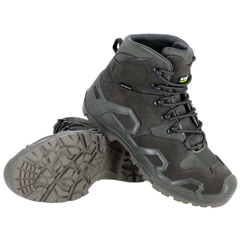 Zvršok je vyrobený z kvalitnej semišovej kože v komparácii s tkaninou OXFORD a nepremokavou membránou, ktorá zaručuje pohodlie aj v nepriaznivých poveternostných podmienkach. Táto kombinácia ešte viac zdôrazňuje estetiku spracovania obuvi, vďaka čomu je štýlová a atraktívna.