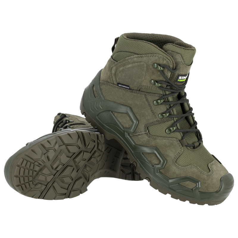 Zvršok je vyrobený z kvalitnej semišovej kože v komparácii s tkaninou OXFORD a nepremokavou membránou, ktorá zaručuje pohodlie aj v nepriaznivých poveternostných podmienkach. Táto kombinácia ešte viac zdôrazňuje estetiku spracovania obuvi, vďaka čomu je štýlová a atraktívna.
