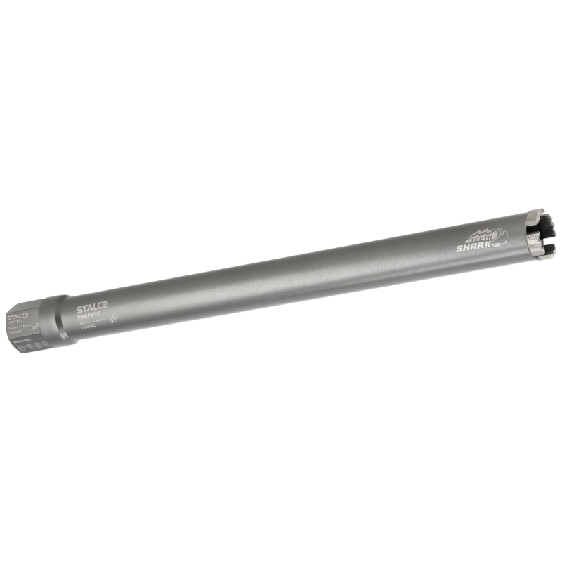 Profesionálna a ultra rýchla diamantová jadrová vŕtacia korunka STALCO PERFECT zo série SHARK, s rozmermi 42 x 400 mm. Navrhnutá na maximálne rýchle vŕtanie hlbokých otvorov do železobetónu, betónu a tvrdého muriva. Je určená pre profesionálne vŕtanie za mokra. Špeciálne diamantové segmenty "SHARK" s agresívnou geometriou zaručujú extrémne rýchly úber materiálu. Laserom privarené segmenty zaisťujú najvyššiu odolnosť.