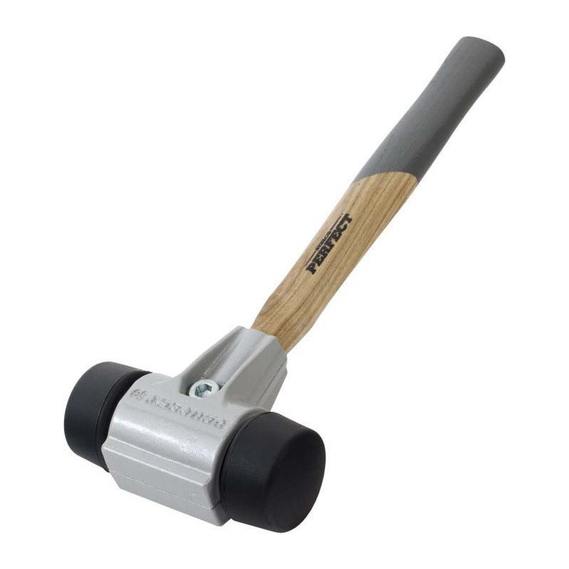 Profesionálne dlažobné a montážne kladivo STALCO PERFECT, priemer hlavy 50 mm a celková hmotnosť 1100 g. Navrhnuté pre silové údery bez poškodenia povrchu. Vybavené vymeniteľnými hlavami z tvrdej čiernej gumy (90 Shore) a vymeniteľnou rukoväťou z bukového dreva. Masívne liatinové telo kladiva zaručuje vysokú hmotnosť a dlhú životnosť. Plne servisovateľný a robustný nástroj pre najnáročnejšie práce.