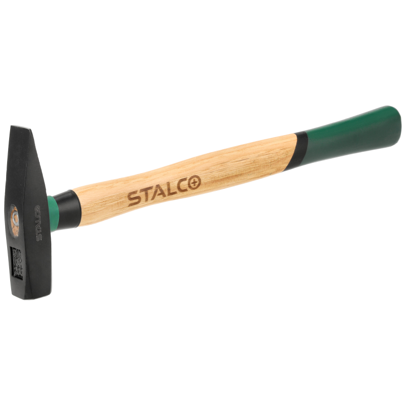 Zámočnícke kladivo STALCO – 200g kladivo s jaseňovou rukoväťou, indukčne kalenou hlavou a ochrannými prvkami, ktoré zvyšujú bezpečnosť a komfort pri používaní.