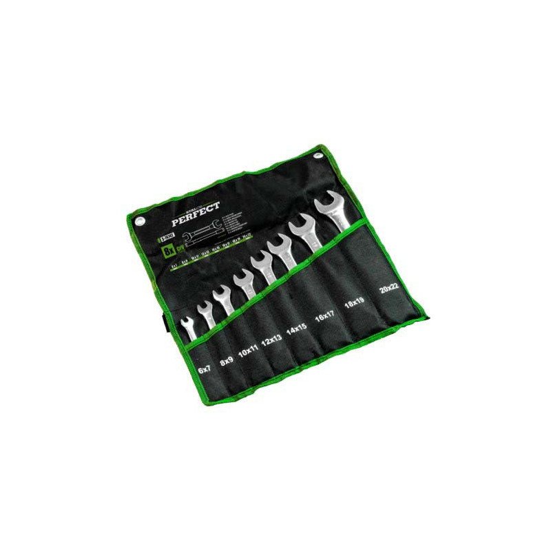 Profesionálna sada 12 kusov obojstranných plochých kľúčov STALCO PERFECT. Komplexná sada pre povoľovanie a uťahovanie skrutiek a matíc v širokom rozsahu veľkostí (6-32 mm). Kľúče sú vykované z leštenej chróm-vanádiovej ocele (Cr-V) v súlade s normou DIN 3110. Precízne opracované čeľuste zaručujú pevný úchop. Dodávané v praktickom rolovacom puzdre. Ideálna výbava pre každú profesionálnu dielňu.