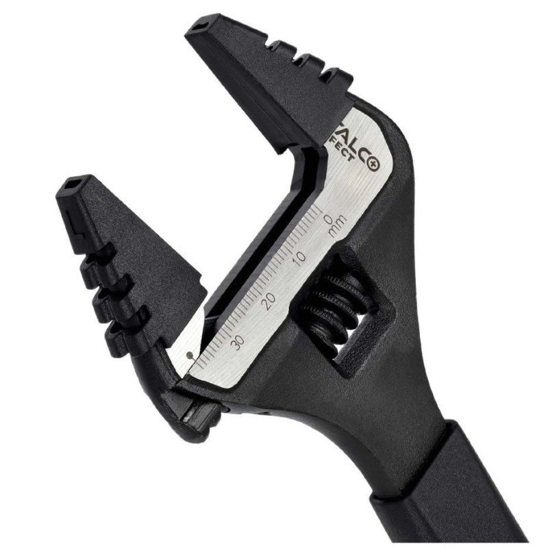 Profesionálny nastaviteľný kľúč STALCO PERFECT so širokými čeľusťami. Kompaktná dĺžka 200 mm s extra veľkým rozsahom čeľustí až do 38 mm. Ideálny pre inštalatérov a mechanikov pracujúcich v stiesnených priestoroch. Je vyrobený z vysoko pevnej chróm-vanádiovej (Cr-V) ocele. Precízny mechanizmus s minimálnou vôľou, laserom vypálená stupnica a ergonomická dvojkomponentná rukoväť zaručujú maximálny výkon a pohodlie.