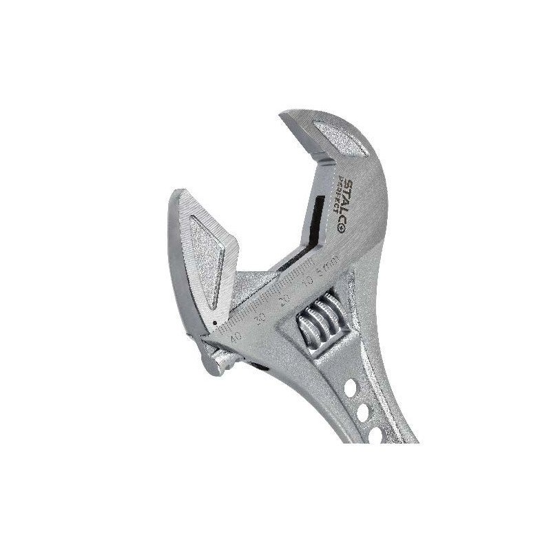 Profesionálny nastaviteľný kľúč STALCO PERFECT, dĺžka 200 mm. Univerzálny nástroj na uťahovanie a povoľovanie skrutiek a matíc. Tento kompaktný model ponúka zväčšený rozsah čeľustí od 0 do 28 mm, čo zvyšuje jeho všestrannosť. Je vyrobený z vysoko pevnej chróm-vanádiovej (Cr-V) ocele. Precízny mechanizmus, laserom vypálená stupnica a ergonomická rukoväť zaručujú presnú a pohodlnú prácu.