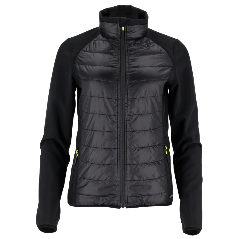 Moderná a funkčná dámska hybridná bunda STALCO PERFECT, model August W. Navrhnutá pre aktívny pohyb v chladnom a premenlivom počasí. Ideálna kombinácia zateplenia, priedušnosti a voľnosti pohybu. Inovatívna hybridná konštrukcia spája zateplenú prešívanú prednú časť (plnenú syntetickým páperím) s elastickým a priedušným softshellom na rukávoch a chrbte. Anatomický dámsky strih, rukávy s otvormi na palce a praktické vrecká na zips.