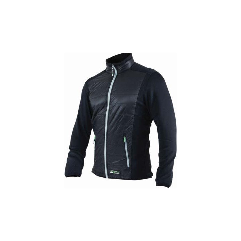 Moderná a funkčná pánska hybridná bunda STALCO PERFECT, model August M. Navrhnutá pre aktívny pohyb v chladnom a premenlivom počasí, ideálna ako kombinácia zateplenia, priedušnosti a voľnosti pohybu. Inovatívna hybridná konštrukcia spája zateplenú prešívanú časť tela (plnenú syntetickým páperím) s elastickým a priedušným softshellom na rukávoch. Vysoký golier, praktické vrecká na zips a reflexné prvky zvyšujú funkčnosť a bezpečnosť.