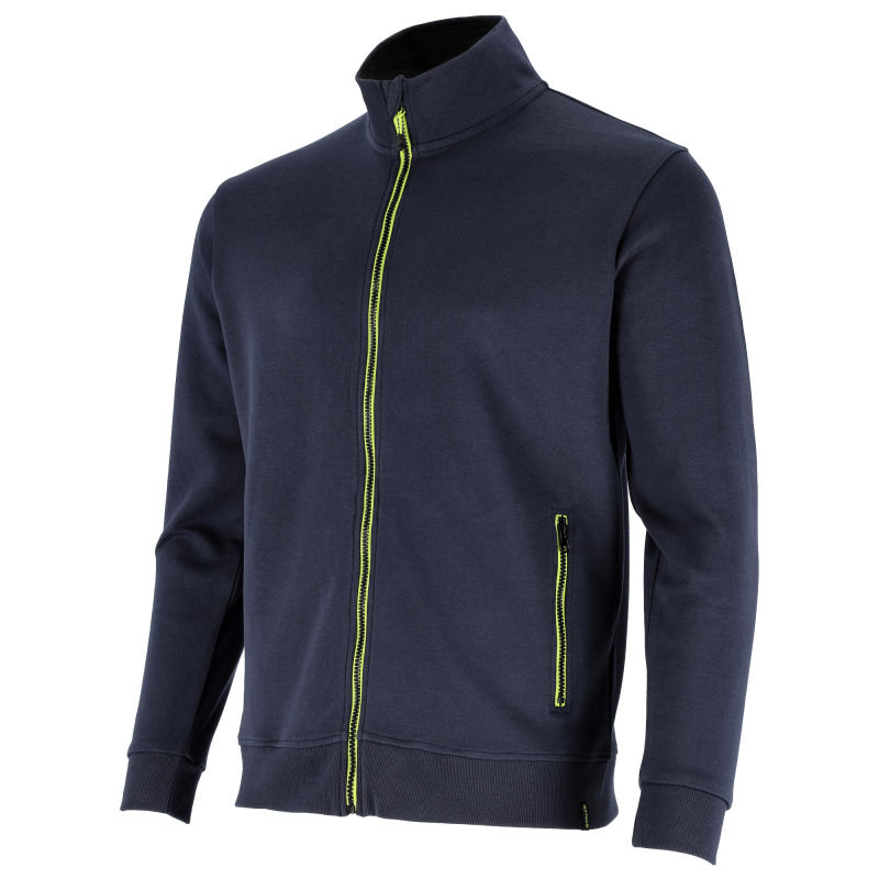 Moderná a pohodlná pánska pracovná mikina STALCO, model IGOR, v čiernej farbe. Univerzálna mikina na zips určená pre prácu aj voľný čas. Je ideálna ako vrchná vrstva v prechodnom období alebo ako stredná vrstva v zime. Vyrobená z vysokokvalitného obojstranného úpletu (Interlock) s vysokým podielom bavlny pre maximálne pohodlie a priedušnosť. Má dve praktické bočné vrecká na zips, vysoký golier a rebrované manžety.