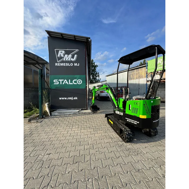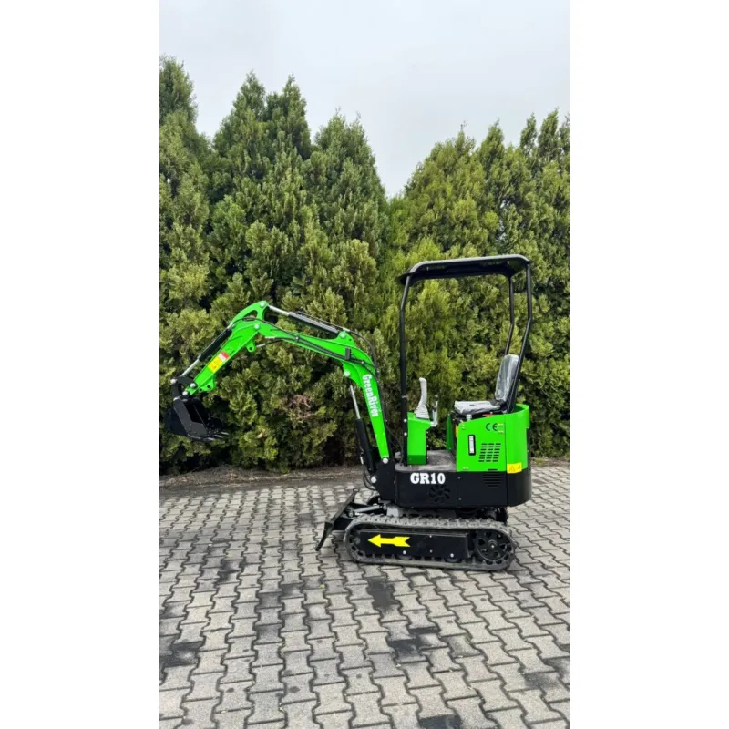 Kompaktný a výkonný minibager GreenRiver GR10. S prevádzkovou hmotnosťou 1000 kg je ideálnym riešením pre zemné práce v ťažko dostupných miestach, ako sú záhrady, úzke prejazdy alebo interiéry. Poháňa ho spoľahlivý a úsporný jednovalcový motor Koop (7 kW). Šírka podvozku len 896 mm umožňuje prejazd bežnými dverami a bránami. Napriek malým rozmerom dosahuje maximálnu hĺbku výkopu až 1650 mm. Jednoduchá obsluha a solídna konštrukcia z neho robia nenahraditeľný stroj pre stavebné firmy, požičovne, záhradkárov a súkromných používateľov.