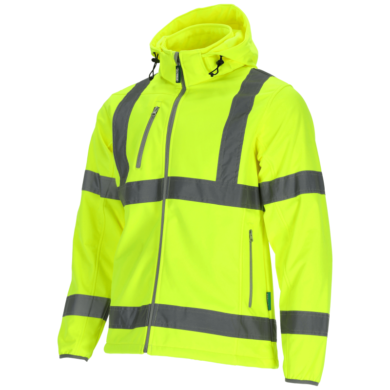 Reflexná softshellová bunda STALCO z modelovej rady NEON. Vysoko viditeľná bunda navrhnutá pre maximálnu bezpečnosť pri práci, spĺňajúca požiadavky na vysokú viditeľnosť (napr. trieda 3 podľa EN ISO 20471). Materiál Softshell s membránou (vodeodolnosť 8000 mm, priedušnosť 3000 MVP) chráni pred vetrom a dažďom. Je zateplená flísovou podšívkou, má odnímateľnú kapucňu a funkčné vrecká na zips.