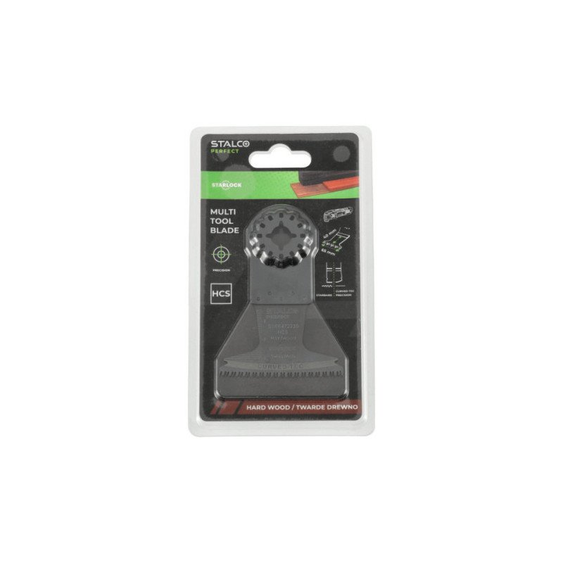 Špecializovaný široký ponorný pílový list STALCO PERFECT AII 65 BSPC so systémom Starlock. Navrhnutý na dlhé, čisté a presné rezy v tvrdom dreve, ako sú parkety, exotické dreviny alebo kuchynské pracovné dosky. Inovatívne trojrozmerné japonské zuby minimalizujú tvorbu tepla a zaručujú rez bez vyštiepavania. Široký záber 65 mm umožňuje rýchlu prácu na väčších plochách. Upínací systém Starlock zaisťuje maximálny prenos sily a rýchlu výmenu listu.