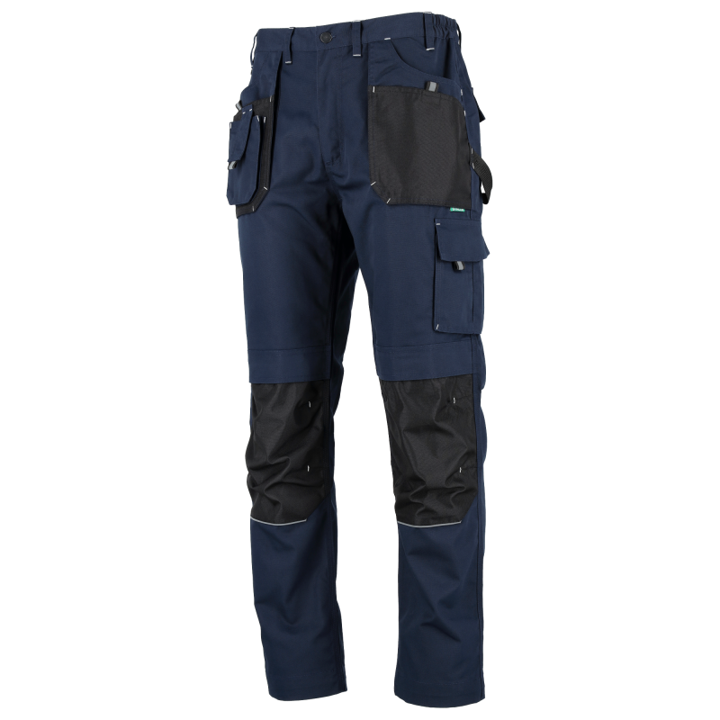 Odolné a funkčné pracovné nohavice do pása STALCO z rady BASIC LINE. Univerzálne nohavice na každodenné použitie v stavebníctve, priemysle a pri montážnych prácach. Sú vyrobené z odolnej zmesi bavlny a polyesteru so zosilnením z extrémne pevnej tkaniny OXFORD 600D na kolenách a vreckách. Trojité švy zaručujú maximálnu životnosť. Nohavice disponujú početnými multifunkčnými vreckami vrátane vreciek na nákolenníky, elastickým pásom a reflexnými prvkami.