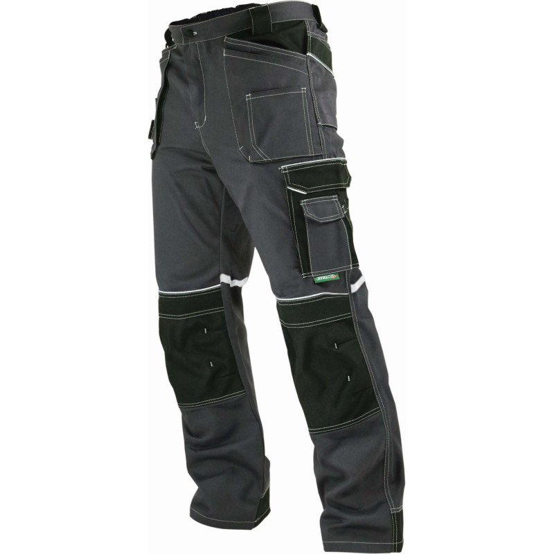 Vysokokvalitné a funkčné pracovné nohavice STALCO z rady ALLROUND LINE. Navrhnuté pre profesionálov, ktorí vyžadujú maximálnu odolnosť, pohodlie a praktickosť pri každodennej práci. Sú zosilnené trojitými švami a výstužami z materiálu OXFORD 600D. Disponujú početnými multifunkčnými vreckami vrátane vreciek na nákolenníky. Možnosť predĺženia nohavíc, široký klin v rozkroku pre voľnosť pohybu a reflexné prvky zvyšujú ich úžitkovú hodnotu.