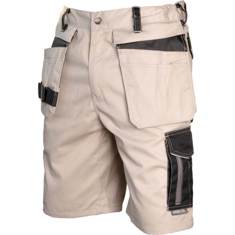Ľahké a vysoko funkčné krátke pracovné nohavice (šortky) STALCO z rady SUMMER LINE. Navrhnuté pre maximálny komfort a priedušnosť pri práci v teplom počasí. Ideálne na leto pre stavebné, montážne a záhradnícke práce. Sú zosilnené trojitými švami a výstužami z materiálu OXFORD. Disponujú početnými multifunkčnými vreckami, vrátane odnímateľných montérskych vreciek. Elastický pás a reflexné prvky zvyšujú komfort a bezpečnosť.