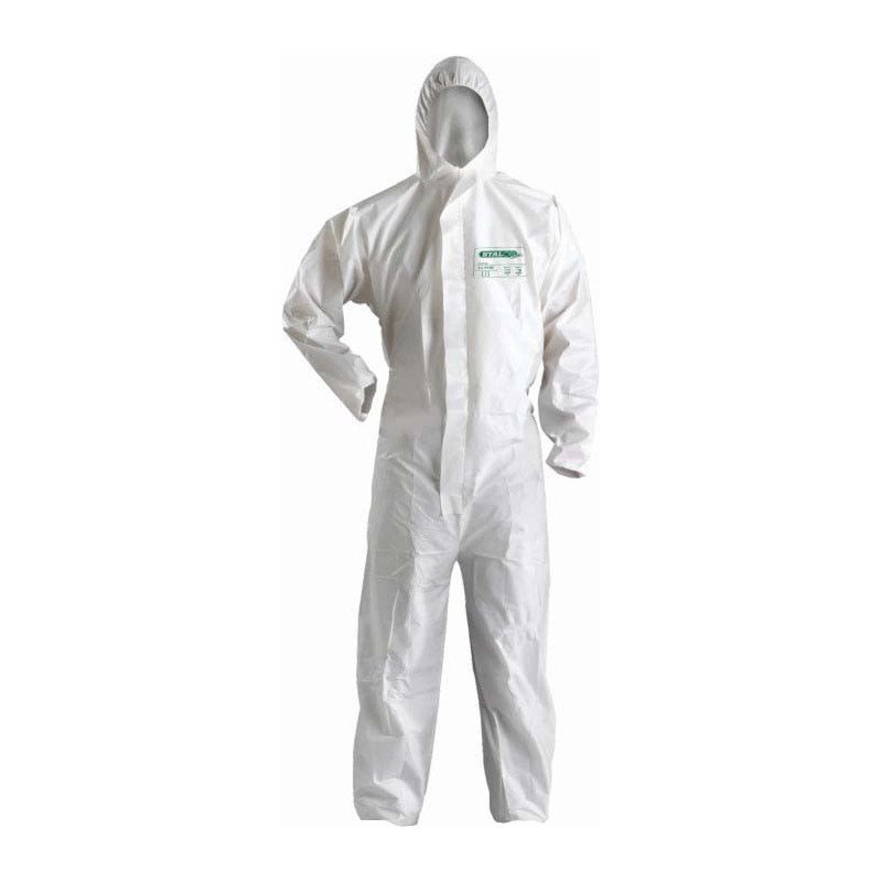 Jednorazová ochranná kombinéza STALCO z materiálu SMS. Certifikovaná podľa normy Typ 5/6, poskytuje účinnú ochranu proti nebezpečným časticiam, prachu a ľahkému postreku kvapalinami. Priedušný a zároveň odolný materiál SMS s gramážou 55 g/m² zaručuje komfort pri práci. Elastické manžety, kapucňa a zips s ochrannou légou zaisťujú dokonalé tesnenie. Ideálna voľba pre maliarske, stavebné, sanačné a poľnohospodárske práce.