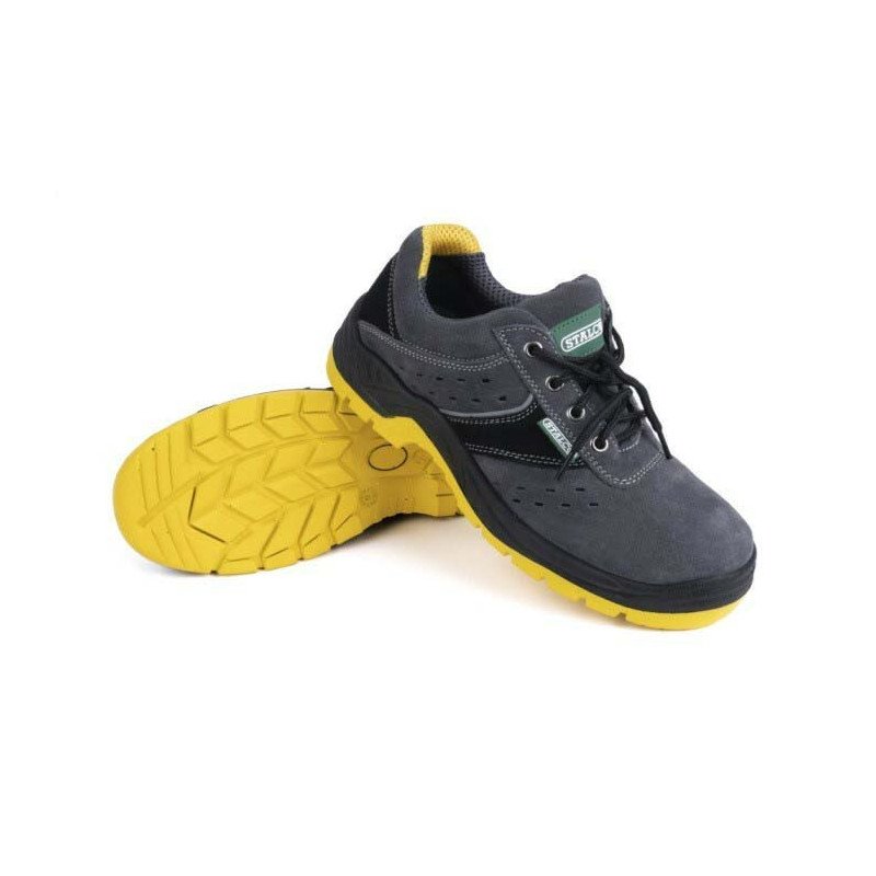 Pohodlná a ľahká pracovná poltopánka STALCO z modelovej rady Service. Certifikovaná v kategórii O1 SRC podľa normy EN ISO 20347. Ideálna pracovná obuv bez ochrannej špice na prácu v logistike, ľahkom priemysle a v suchom prostredí. Zvršok z priedušnej semišovej kože zaručuje maximálny komfort. Dvojzložková PU/PU podrážka so systémom Antishock a najvyššou protišmykovou triedou SRC.