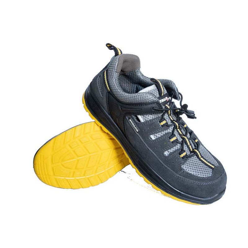 Moderné a extrémne ľahké bezpečnostné sandále STALCO z modelovej rady Joker. Certifikované v kategórii S1P SRC podľa normy EN ISO 20345. Ideálne na prácu v teplom prostredí, kde je vyžadovaná kompletná ochrana chodidla. Disponujú oceľovou ochrannou špičkou a oceľovou stielkou proti prepichnutiu. Zvršok z priedušnej semišovej kože a sieťoviny zaručuje maximálny komfort. Dvojzložková PU/PU podrážka s Antishock systémom a rýchle zapínanie na elastické šnúrky.