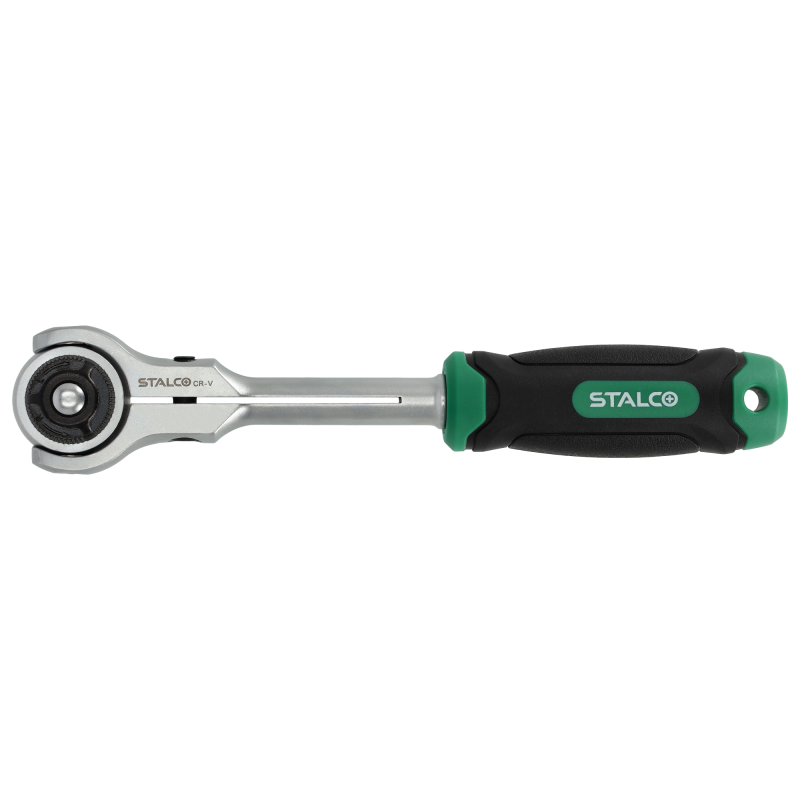 Inovatívna 360° rotačná račňa STALCO s unášačom 1/2" a dĺžkou 250 mm. Navrhnutá pre prácu v extrémne stiesnených priestoroch, kde nie je žiadne miesto na pohyb rukoväťou. Umožňuje uťahovanie a povoľovanie skrutiek otáčaním samotnej rukoväte. Zároveň funguje aj ako klasická 72-zubová račňa s 5° krokom. Dva nástroje v jednom pre maximálnu flexibilitu a riešenie problémov.