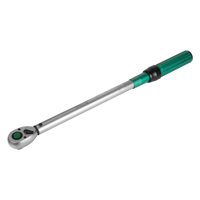 Profesionálny momentový kľúč STALCO s unášačom 1/2" a širokým rozsahom 65-350 Nm. Základný a najuniverzálnejší momentový kľúč pre každý autoservis a dielňu, ideálny na uťahovanie skrutiek kolies, komponentov motora a podvozku. Spoľahlivý "klikací" mechanizmus presne signalizuje dosiahnutie nastaveného momentu. Jemná 72-zubová račňová hlava z Cr-Mo ocele umožňuje prácu aj v stiesnených priestoroch. Dodávaný v ochrannom puzdre s certifikátom o kalibrácii.