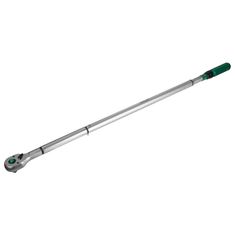 Profesionálny a masívny momentový kľúč STALCO s unášačom 3/4" a obrovským rozsahom 160-800 Nm. Navrhnutý pre najnáročnejšie práce v servisoch nákladných vozidiel, poľnohospodárskej a stavebnej techniky. Spoľahlivý "klikací" mechanizmus presne signalizuje dosiahnutie nastaveného momentu. Robustná 24-zubová račňová hlava z Cr-Mo ocele je stavaná na extrémne zaťaženie. Dodávaný v ochrannom puzdre s certifikátom o kalibrácii.