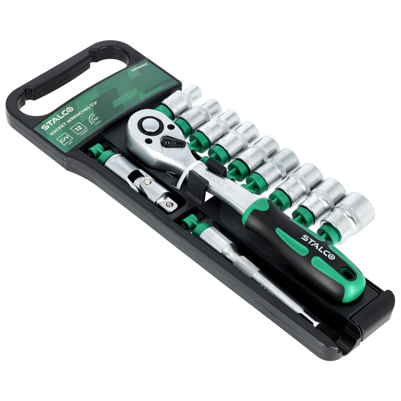Nástrčné hlavice a račňa na vešiaku 12 kusov 1/2“ - STALCO