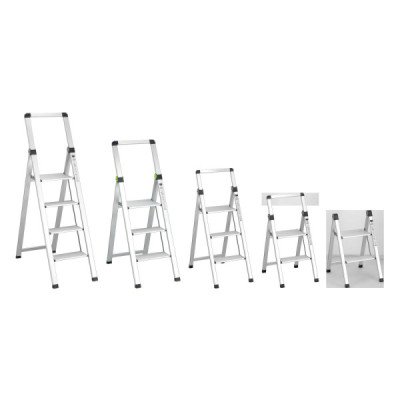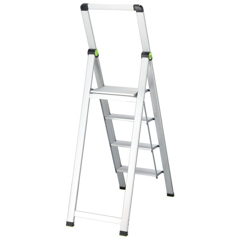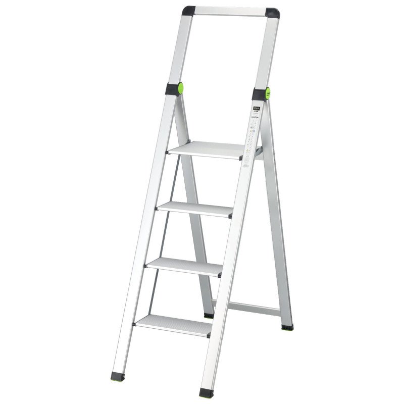 Rebrík STALCO PERFECT SLIM – kompaktný, ľahký a odolný rebrík s maximálnou nosnosťou 150 kg, širokou plošinou a hliníkovou konštrukciou, ideálny pre prácu doma alebo v kancelárii.