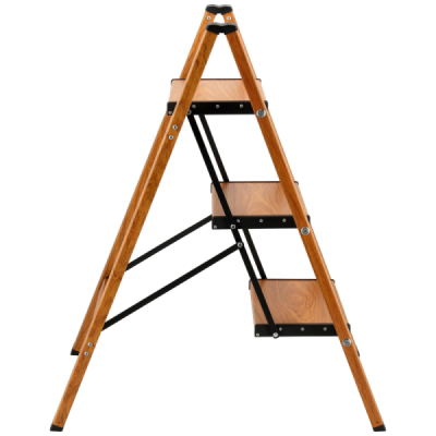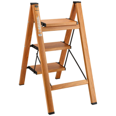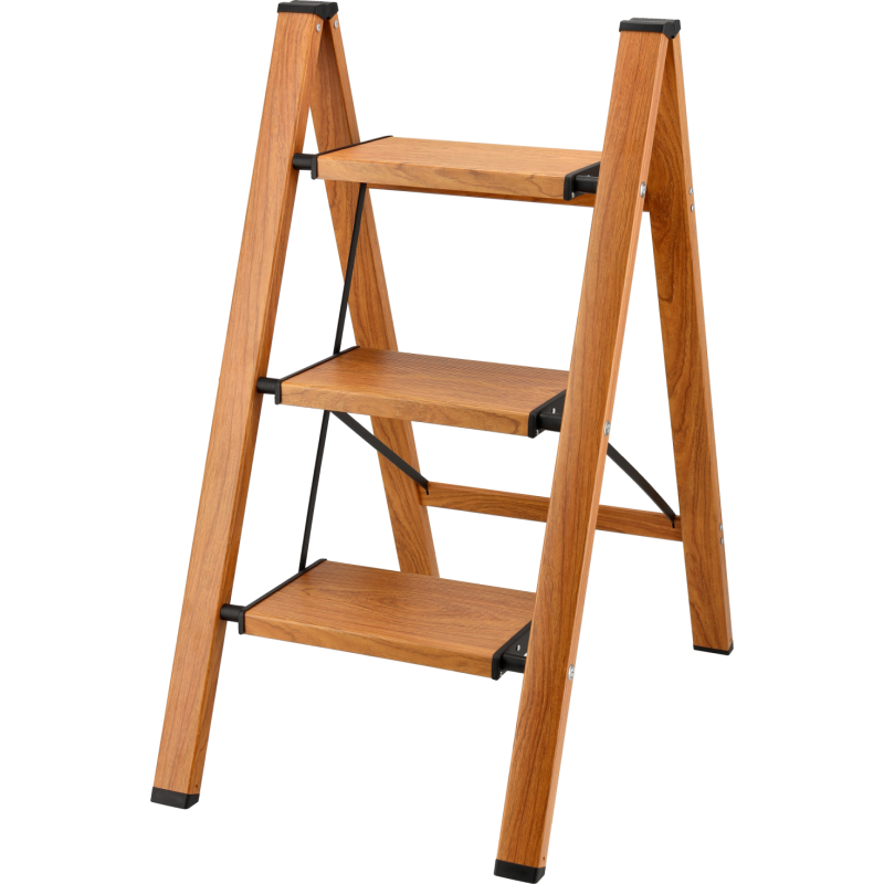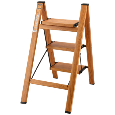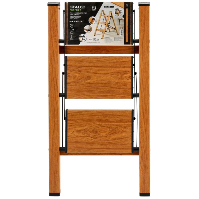 Dizajnový 3-stupňový skladací rebrík STALCO PERFECT v elegantnom prevedení drevodekor. Ideálny pre domácnosti, knižnice, obchody a kancelárie, kde je dôležitý nielen bezpečný prístup do výšky, ale aj vzhľad. Atraktívny povrch imitujúci drevo je aplikovaný na ľahkej a pevnej hliníkovej konštrukcii. V zloženom stave je extrémne tenký, čo umožňuje jednoduché skladovanie. Má vysokú nosnosť až 150 kg a široké, protišmykové stupne pre maximálnu bezpečnosť.