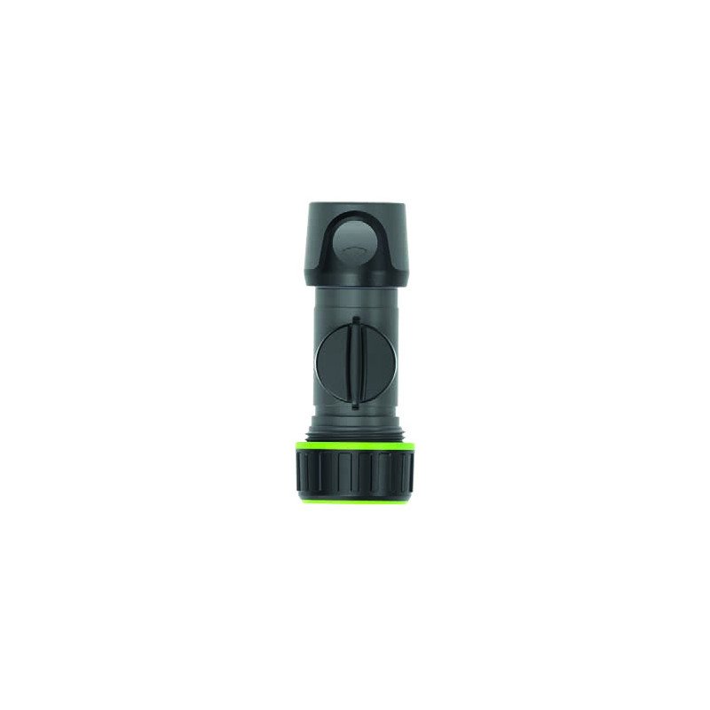 Pohodlné ovládanie prietoku: Hlavnou prednosťou je integrovaný uzatvárací ventil. Pomocou veľkého, ergonomicky tvarovaného ovládača môžete jednoducho a plynule regulovať prietok vody alebo ho úplne zastaviť. Je to ideálne pri výmene príslušenstva ako sú postrekovacie pištole alebo zavlažovače, bez toho, aby ste sa namočili alebo museli zatvárať hlavný prívod vody.