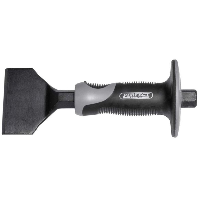Profesionálny široký sekáč STALCO PERFECT (76x215 mm) s ochranným krytom ruky. Navrhnutý na rýchle a efektívne odstraňovanie podlahových krytín, dlažby, omietok a na čistenie veľkých plôch. Extra široký hrot z vysoko odolnej chróm-vanádiovej ocele zaručuje maximálny záber. Ergonomická, antivibračná dvojkomponentná rukoväť s ochranným štítom pre maximálnu bezpečnosť a komfort pri plošných demolačných prácach.