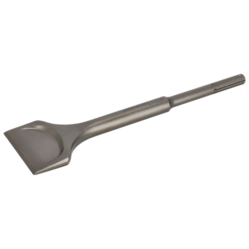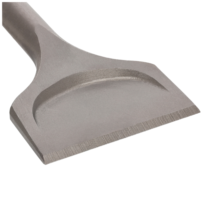 Kovaná oceľ: Sekáč je kovaný z jedného kusu vysokokvalitnej nástrojovej ocele, ktorá je špeciálne kalená a temperovaná, aby odolala extrémnym rázom búracích kladív.
