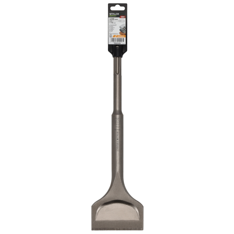 Profesionálny samoostriaci široký sekáč STALCO PERFECT so stopkou SDS-max, s rozmermi 115 x 400 mm. Navrhnutý pre vysoko efektívne a rýchle odstraňovanie omietok, poterov, dlažby a iných stavebných materiálov pri ťažkých búracích prácach. Inovatívny samoostriaci profil ostria zaručuje konštantne vysoký úberový výkon a mnohonásobne dlhšiu životnosť v porovnaní s bežnými sekáčmi. Široký záber 115 mm zaisťuje rýchly postup práce.