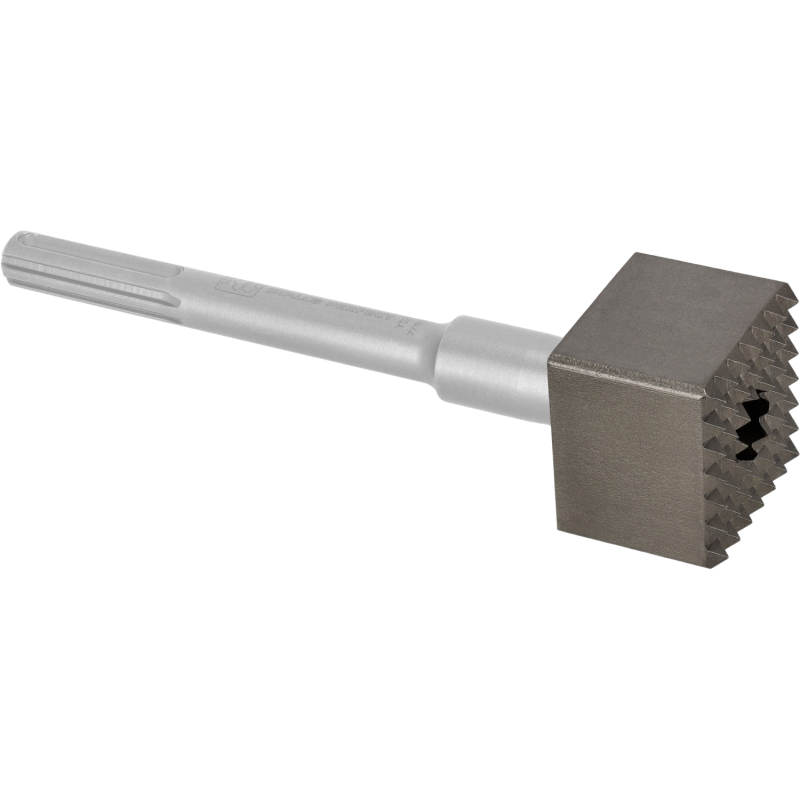 Karbidové hroty pre maximálny výkon: Pracovná plocha s rozmermi 60 x 60 mm je osadená mriežkou 49 (7x7) samostatných hrotov. Každý hrot je vyrobený z extrémne tvrdého a odolného karbidu volfrámu. Pri použití v búracom kladive tieto hroty vysokou frekvenciou narážajú na povrch betónu a efektívne ho rozrušujú a zdrsňujú, čím vytvárajú ideálny podklad.