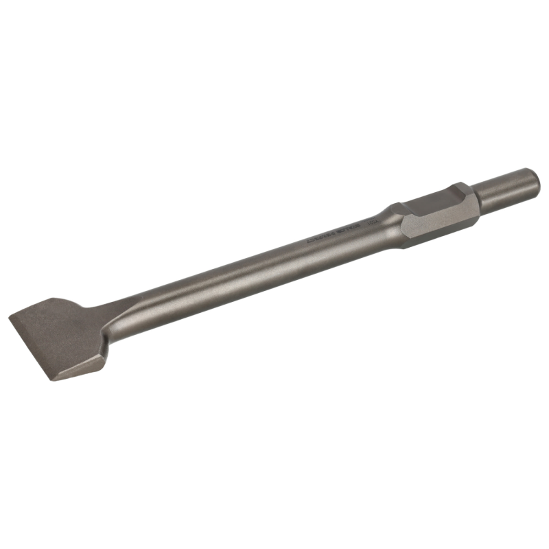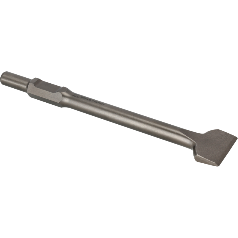 Kovaná oceľ: Sekáč je kovaný z jedného kusu vysokokvalitnej nástrojovej ocele, ktorá je špeciálne kalená a povrchovo upravená, aby odolala nepretržitým a silným rázom búracieho kladiva.