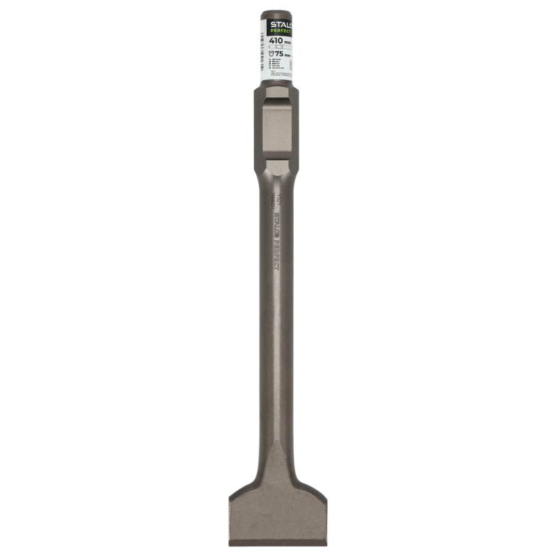 Profesionálny a extrémne odolný široký sekáč STALCO PERFECT s rozmermi 75 x 410 mm a s upínaním HEX 30 mm. Navrhnutý pre najťažšie búracie práce a plošné odstraňovanie materiálov, ako sú betón, asfalt a murivo. Určený pre veľké a výkonné búracie kladivá. Často je vybavený samoostriacim profilom pre konštantne vysoký úberový výkon a extrémne dlhú životnosť. Masívna konštrukcia z kovanej a kalenej nástrojovej ocele zaručuje maximálnu odolnosť.