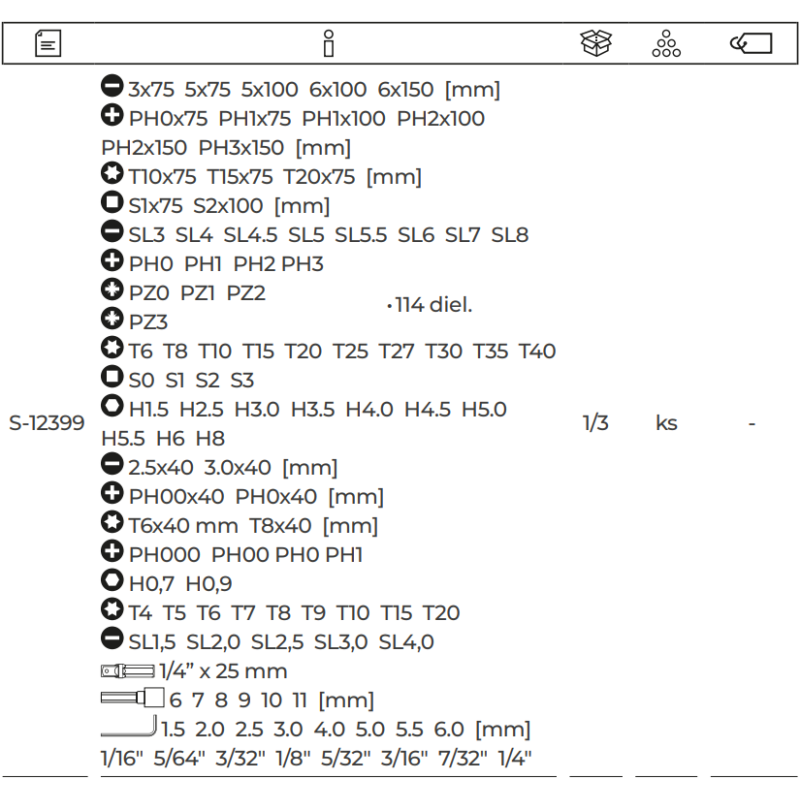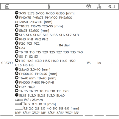 Krížový - PH0x75 PH1x75 PH1x100 PH2x100 PH2x150 PH3x150 [mm]