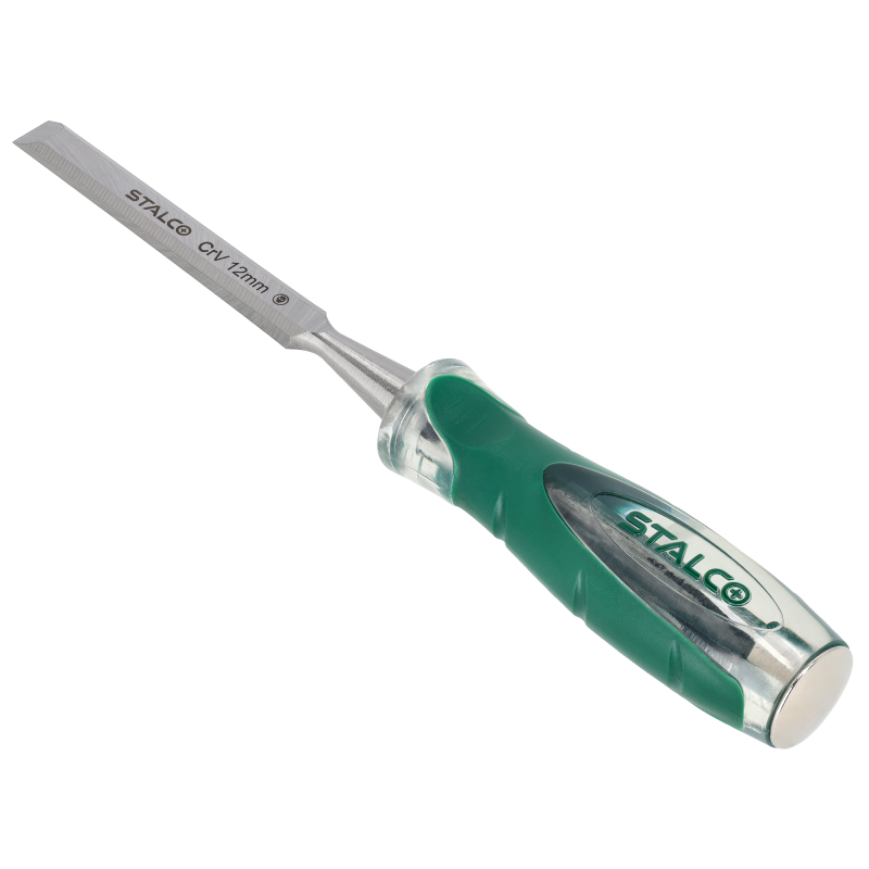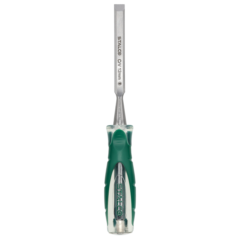 Profesionálne stolárske dláto STALCO so šírkou čepele 12 mm. Univerzálny nástroj na opracovanie dreva – na sekanie, dlabanie, začisťovanie a vytváranie spojov. Čepeľ je vyrobená z jedného kusu kovanej Cr-V ocele pre maximálnu pevnosť a odolnosť. Rukoväť je zakončená kovovou úderovou pätkou, ktorá umožňuje prácu s kladivom. Ergonomická dvojkomponentná rukoväť zaručuje pohodlný a bezpečný úchop.