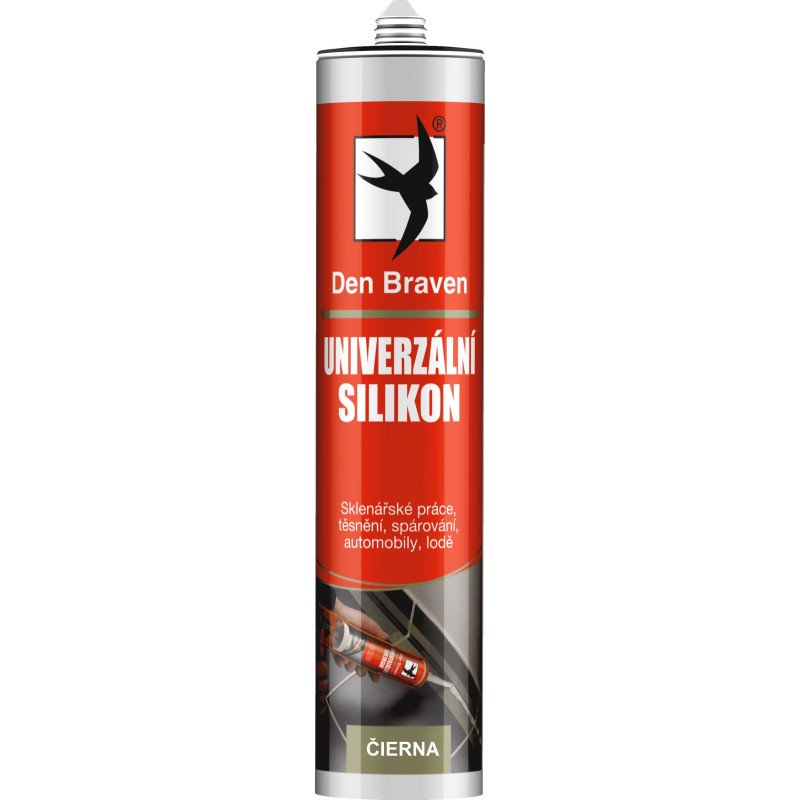 Univerzálny acetátový silikónový tmel DEN BRAVEN v čiernej farbe, balenie 280 ml. Navrhnutý na tesnenie a tmelenie širokej škály škár a spojov, obzvlášť tam, kde je požadovaný čierny odtieň (napr. ku kovovým alebo tmavým prvkom). Ideálny pre sklenárske práce, stavebné konštrukcie a priemyselné aplikácie. Vytvára trvalo pružný a vodotesný spoj s vynikajúcou odolnosťou voči vlhkosti, poveternostným vplyvom a UV žiareniu.