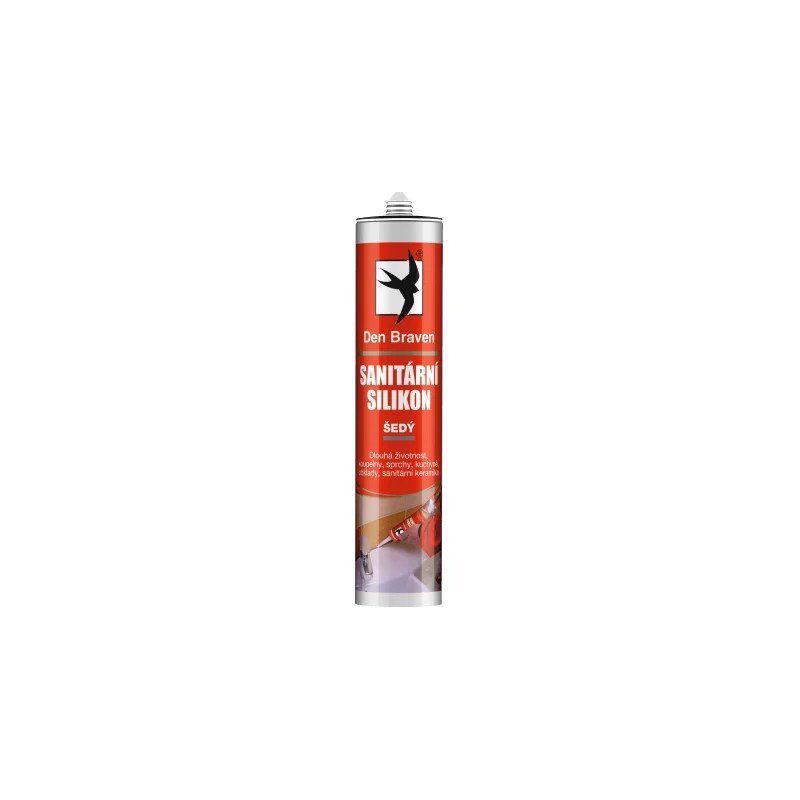Špeciálny sanitárny acetátový silikónový tmel DEN BRAVEN v sivej farbe, balenie 280 ml. Navrhnutý na tesnenie škár v priestoroch s trvalo vysokou vlhkosťou, ako sú kúpeľne a kuchyne. Sivý odtieň je modernou voľbou, ktorá skvele ladí s betónovými stierkami, nerezovými prvkami a sivými obkladmi. Tmel obsahuje účinné fungicídne zložky, ktoré zaručujú dlhodobú odolnosť proti plesniam.