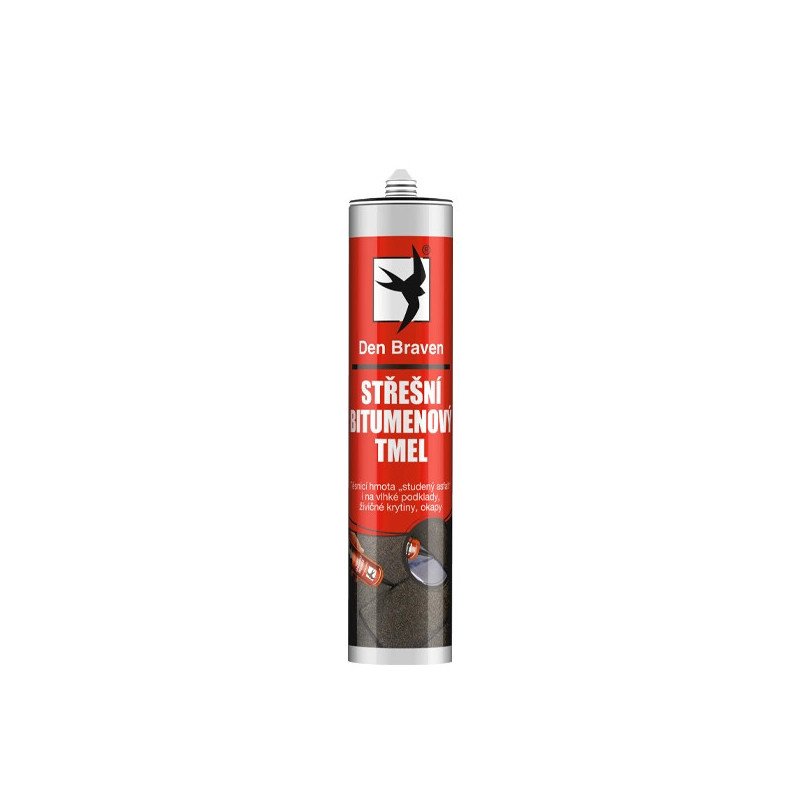 Profesionálny strešný bitúmenový tmel DEN BRAVEN v čiernej farbe, balenie 310 ml. Špeciálny tmel určený na núdzové opravy a tesnenie strešných krytín, odkvapov a klampiarskych prvkov. Ideálny pre prácu s bitúmenovými pásmi (lepenkou). Vytvára okamžitý, trvalo plastický a vodotesný spoj. Jeho najväčšou výhodou je vynikajúca priľnavosť k väčšine stavebných materiálov, aj na vlhké podklady