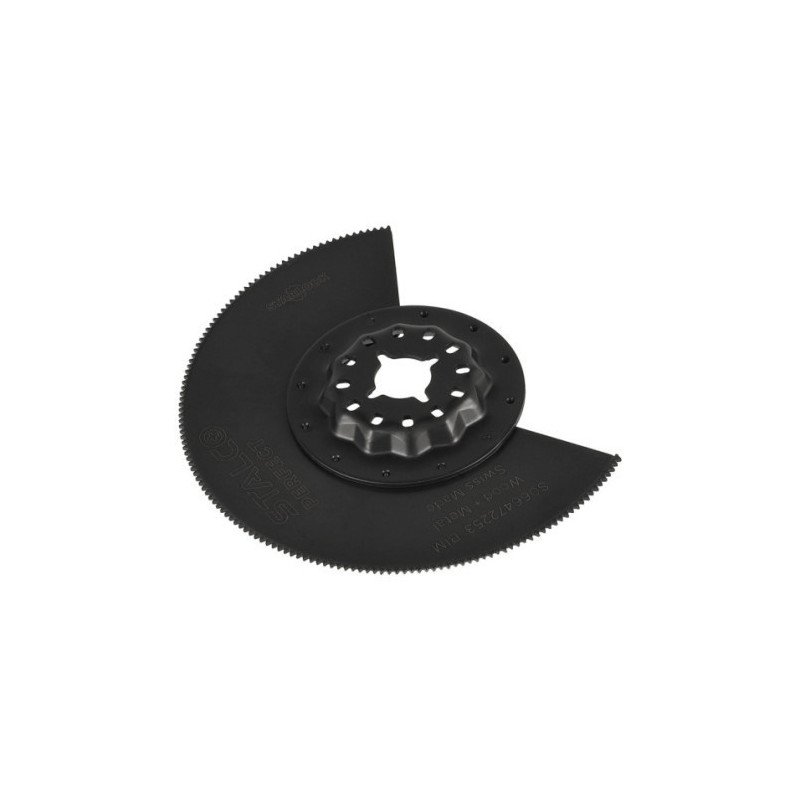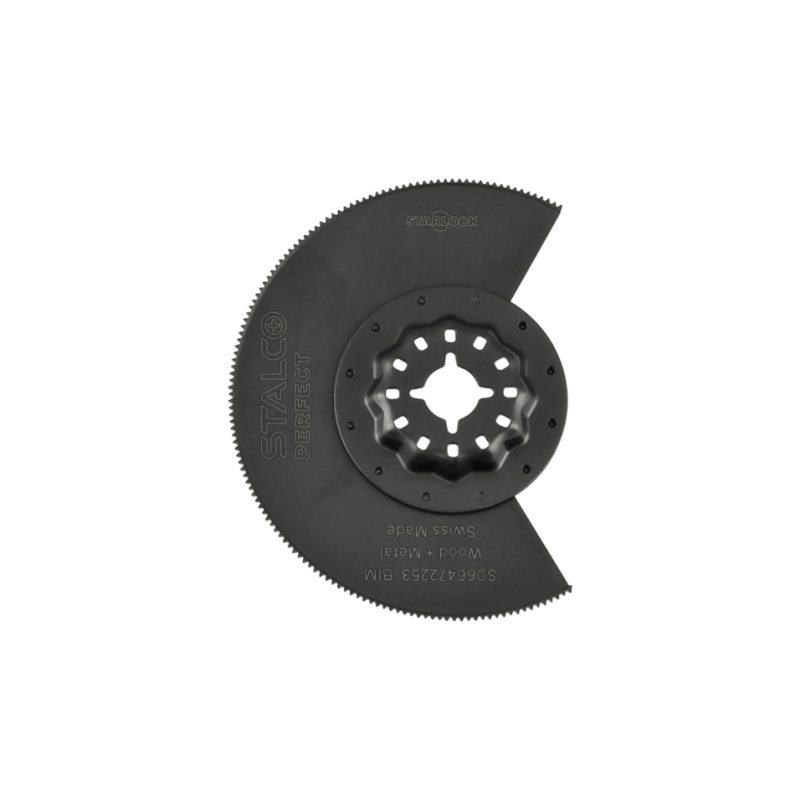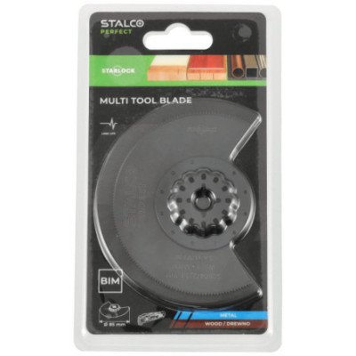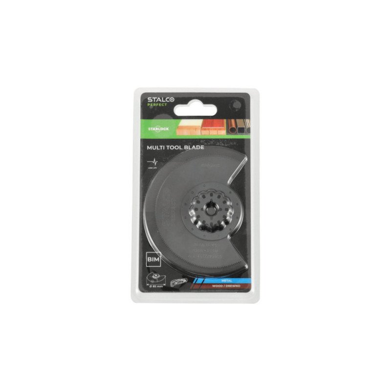 Profesionálny segmentový pílový list STALCO PERFECT ACZ 85 EB so systémom Starlock. Univerzálny list určený na dlhé, rovné a zarovnávacie rezy v dreve, lamináte, plastoch a neželezných kovoch, ako sú hliníkové lišty. Bimetalová (BIM) konštrukcia zaručuje extrémne dlhú životnosť. Segmentový tvar (Ø 85 mm) a znížený stred umožňujú dokonalé zarovnávacie rezy priamo pri povrchu, napríklad pri podlahárskych prácach.