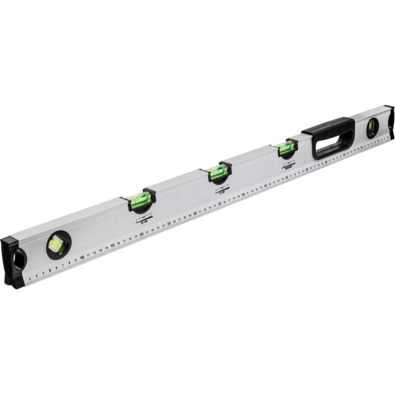 Viacúčelová 80 cm hliníková vodováha STALCO, vybavená piatimi libelami pre presné meranie sklonov (1.5°, 3.5°) a uhlov (45°). Praktická V-drážka na spodnej strane uľahčuje prácu s rúrami a oblými profilmi. Ideálny a presný nástroj pre inštalatérov, kúrenárov a stavebníkov, ktorí potrebujú nastavovať presné spády
