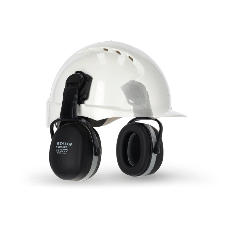 Profesionálne protihlukové chrániče sluchu STALCO PERFECT, model SHARK H, určené pre montáž na prilbu. Navrhnuté na integráciu s priemyselnými prilbami STALCO (napr. EVO 3, Helius). Poskytujú ochranu pred vysokou úrovňou hluku a sú certifikované podľa normy EN 352-3. Vysoká úroveň útlmu hluku (napr. SNR: 32 dB) a dielektrická konštrukcia bez kovových častí zaručujú maximálnu bezpečnosť.