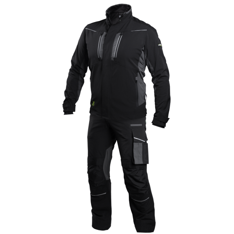 • Elastická tkanina: Základom je inovatívna, elastická tkanina (zmes polyesteru a bavlny) so softshellovými vlastnosťami. Je priedušná, rýchloschnúca, chráni pred vetrom a vďaka svojej pružnosti sa dokonale prispôsobuje každému pohybu.