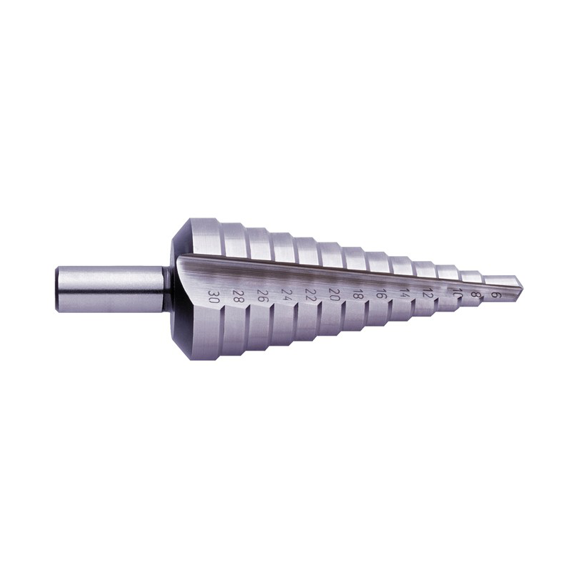 Profesionálny stupňovitý vrták STALCO PERFECT HSS s rozsahom priemerov od 4 do 12 mm. Navrhnutý na presné vŕtanie a zväčšovanie otvorov v tenkých materiáloch, ako sú plechy, plasty a neželezné kovy. Je vyrobený z vysokokvalitnej rýchloreznej ocele (HSS) pre dlhú životnosť a ostrosť. Samocentrovací hrot zabraňuje skĺznutiu pri navŕtavaní. Deväť stupňov v krokoch po 1 mm.