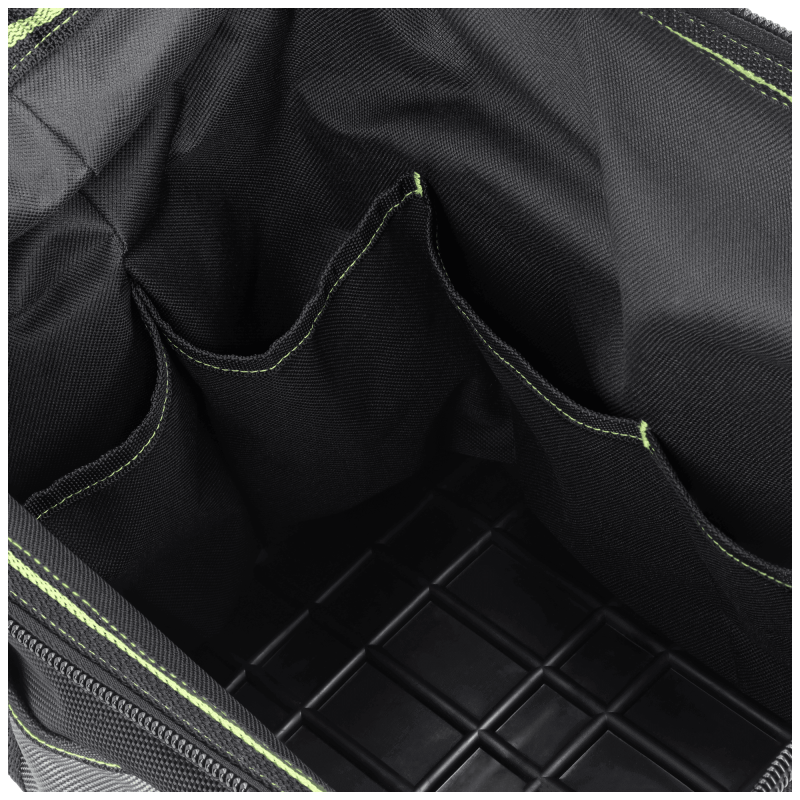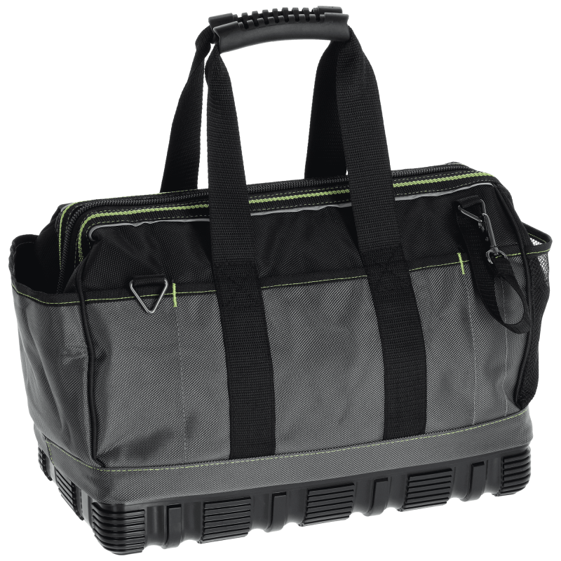 Pohodlné prenášanie: Okrem robustnej rukoväte s penovým úchopom je taška vybavená aj odnímateľným a polstrovaným ramenným popruhom, ktorý uľahčuje prenášanie ťažšieho náradia na dlhšie vzdialenosti.