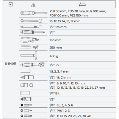 -55 dielna súprava, 1/2" 1/4"