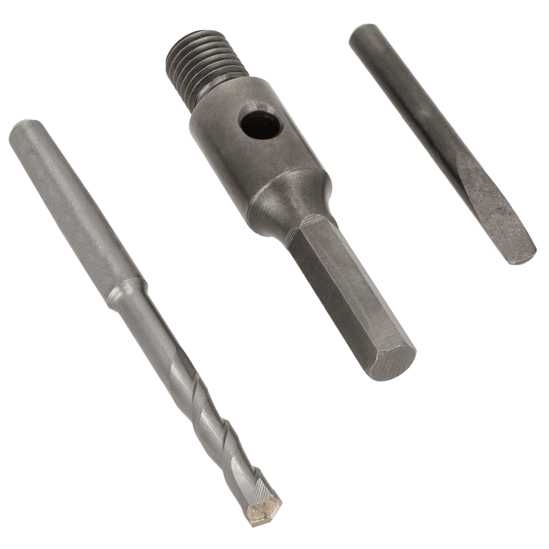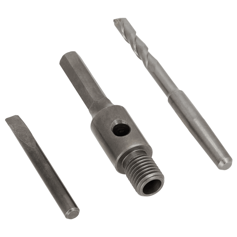 Profesionálny adaptér STALCO PERFECT so šesťhrannou (HEX) stopkou a vodiacim vrtákom. Navrhnutý na upnutie diamantových vŕtacích koruniek so závitom M16 do bežných vŕtačiek a vŕtacích kladív (s vypnutým príklepom). Pevná oceľová konštrukcia s dĺžkou 100 mm a šesťhranná stopka zaisťujú bezpečné upnutie bez prešmykovania. Súčasťou je vodiaci vrták Ø 8x120 mm pre presné navŕtavanie. Nevyhnutné príslušenstvo pre prácu s vŕtacími korunkami STALCO PERFECT.