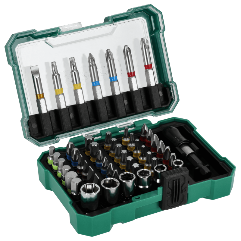 Kvalitné materiály pre profesionálne nasadenie: Všetkých 43 skrutkovacích bitov v sade je vyrobených z prémiovej nástrojovej ocele S2. Tento materiál je húževnatý, extrémne odolný voči opotrebovaniu a "strhnutiu" hrotu, čo zaručuje dlhú životnosť aj pri použití v uťahovákoch.