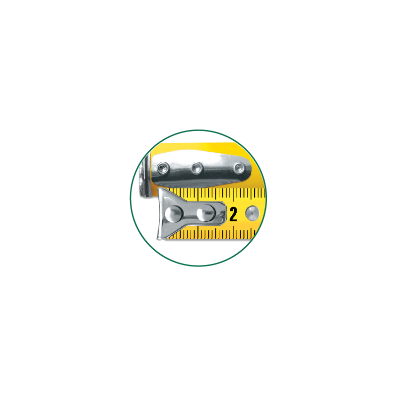Meter zvinovací STALCO je vybavený viacerými praktickými vlastnosťami, ktoré zaručujú jeho dlhodobú odolnosť a spoľahlivosť pri práci. Protišmykový kryt vyrobený z ABS plastu s gumovými prvkami TPS poskytuje zvýšenú ochranu a absorbuje nárazy pri páde. Dve tlačidlá blokovania pásky umožňujú dočasné alebo trvalé zastavenie meracieho pásu, čo uľahčuje manipuláciu. Tri nity upevňujúce príchytku k meracej páske zabezpečujú vyššiu odolnosť voči mechanickému poškodeniu.